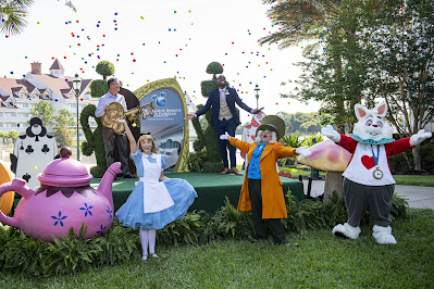 Just in time to conclude this special "tea party," Alice, Mad Hatter and the White Rabbit joined the celebration and led the way to the magical key that revealed the first look at the new resort studios.